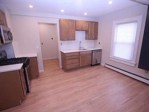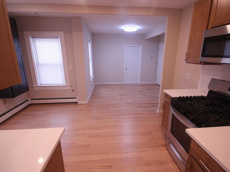 Newly renovated townhouse style unit in two family home. Main level boasts open floor plan with NEW Quartz kitchen, new hardwood floors, two large bedrooms and NEW tile bath. Upper level features ideal home office or playroom with wet bar, full bath and walk in closet. Washer/Dryer in the unit. Close to NY express bus, schools and shops. Small pet considered.