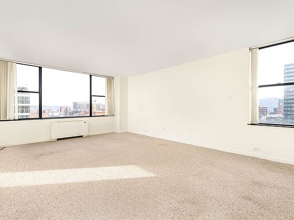 Coveted "L" floorpan with windows on 2 sides. Fabulous views of Downtown Pittsburgh & city lights at night. Doorman building. Around the corner from Duquesne University, along the bus line, across from the T station. Walk to all Downtown Pittsburgh restaurants, theatre, music, art museums, shopping.