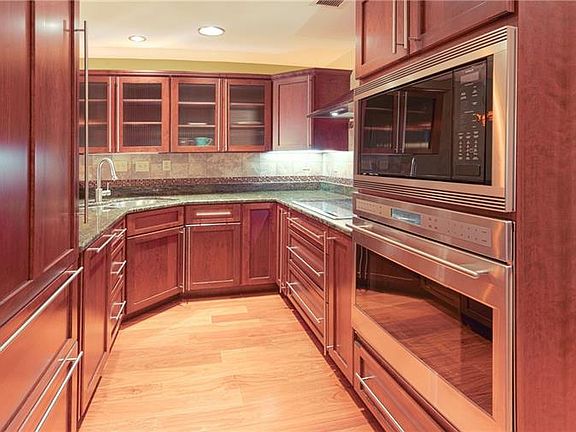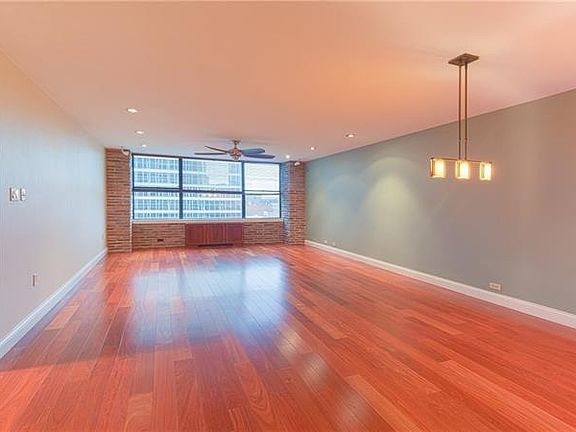This one is a stunner! Gut renovated and customized with top of the line appliances. Granite counter tops in kitchen and baths. Overhead lighting galore! Two ceiling fans and newer flooring throughout. Customized wooden HVAC covers, Cherry wood cabinets and doors. Customized blinds. Large master bath with has shower, tub and vanity. Huge walkin closet off dressing room area. Doorman building. Condo fee includes water, sewage, trash removal, heat and air conditioning. Parking is separate lease with garage.