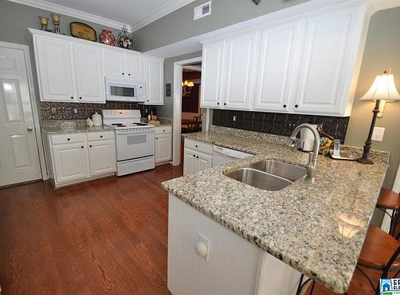 UPDATED & MOVE-IN READY!! 4BR,2.5BA home w/ fenced yard on cul-de-sac street. Updates: NEW Granite, NEW sink, NEW HVAC 2012, Master bath w/ NEW granite & NEW shower. Great room w/ gas fireplace & Hardwoods. Formal dining room w/ hardwoods, Kitchen w/ NEW Granite, breakfast bar, & pantry. Master on main w/ tray ceiling, Updated private bath, NEW his/her granite vanities, NEW tile shower, jet tub & walk-in closet. Half guest bath, Walk-in laundry on main w/ storage. Bedrooms w/ walk-in closets plus full bath for kids, XL 4th BR w/ walk-in closet or use as play/rec room. Screened & open patio & fenced yard for play, cul-de-sac street--perfect for kids & bikes. Great neighborhood w/ underground utilities, walking trail, playground, & private Lake. Super location--just minutes to Alabaster City schools, shopping & I-65. Walk to lake & MOVE-IN READY--Call Today!