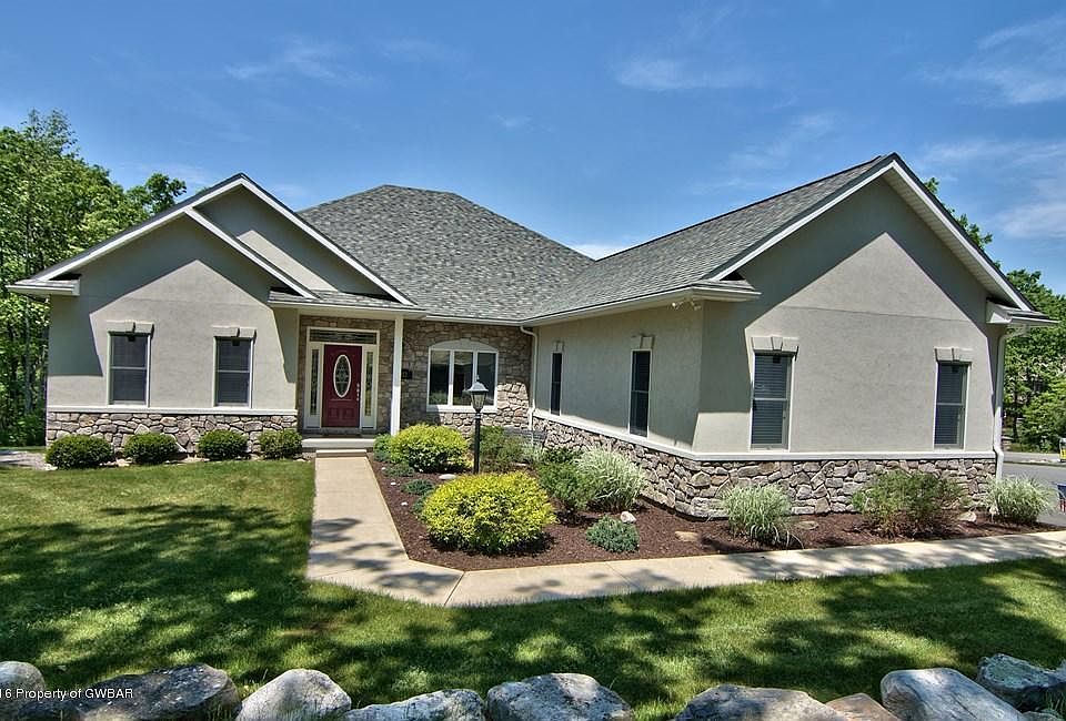 Custom Built Windsor Hill Ranch! Set on a one acre corner lot on two cul-de-sac roads....Step Inside and be Greeted with Gleaming Hardwood Floors; Private Office with Glass French Doors; Spacious Dining Room with Butler Pantry / Wet Bar; Soaring Vaulted Ceilings in Living Room with Gorgeous Views, French Doors to Trex Deck and Stone Faced Propane Gas Fireplace....Master Bedroom Suite offers Rear Yard Views / Trey Ceiling / Double Vanity / Walk In Closet / Eat In Kitchen offers Superior Custom Cherry Cabinetry with Unique End Cabinets with Awesome Views of Rear Yard / Drawer under Range Top!! / Two additional Bedrooms and Full Bathroom / Huge Laundry Room "to - die - for" / Lower Level has Finished Family Room / Cedar Closet / Full Bathroom / Additional Un-finished Space could be two or three more bedrooms / Possible Wine Room / Utility Room / Garage and Lower Level have radiant floor heating / Ceiling Fans in Virtually Every Room / Whole House Generator for Peace of Mind! Propane Tank is IN-Ground and Owned to SHOP for your propane! Gorgeous Landscaping / Awesome location / North Pocono Schools / Convenient to Shopping / Interstates / Venues / Schools! Call TODAY for your Private Tour - See "Matterport" Tour - and SEE FOR YOURSELF!! https://www.stevenwallacemedia.com/3d-model/112-wellington-dr/skinned/