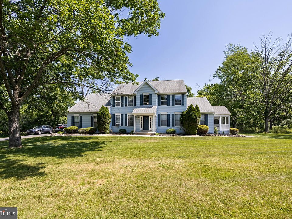 Welcome to this 5 bedroom 3.1 bath finished basement with 2 car garage home situated in a private flag lot with two porches. 1st floor features 2 story Foyer with hardwood floors. Bright Dining room with crown moldings and chair rails. Large Kitchen with island, recessed lights, and adjoined Breakfast area with a large slider door to the back covered porch that offers private and cozy setting, and large back yard. Large Family room with a wood-burning fireplace for winter family gatherings. The 5th bedroom with additional living space is located on the 1st floor which can be used as an in-law suite with a full bath and separate entrance. 1st floor Laundry with door to oversized two-car garage and back yard. 2nd floor offers the Main bedroom with a full bath with tub and shower, walk-in closet, recessed lights, and ceiling fan. Three other ample-sized bedrooms with a hallway full bath to complete the 2nd floor. Finished basement for additional spaces. Great location! Close to schools, shops, restaurants, and easy access to highways (Rt. 63, Rt. 202, Rt. 309, and PA Turn Pike).