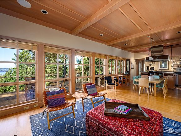 An ideal escape in the desirable Decatur Northwest Community! A place to relax and reset. This custom crafted home blends with the surrounding environment and offers comfortable gathering space for many or few, along with ample sleeping options for guests. Entertain on the wrap-around deck while taking in the fresh air, island sunsets, and everyday wildlife. Very easy to access with private mainland parking lot and private ferry for homeowners, running twice daily from Anacortes. Never wait in a ferry line to come and go. Amenities include over 600 acres in the San Juan Islands, nature trails, robust gardens, a deep water dock, mooring buoys, sandy beaches, 3 tennis courts, fresh water trout pond, and onsite caretakers. Golf cart included.