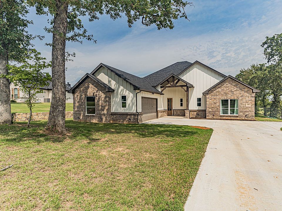 This home is a must see! Offering 4 bedrooms, 2.5 baths and sitting on an acre overlooking a pond, it is surrounded by beautiful oak trees, and neighbors well-kept properties. A truly relaxing setting for evenings on the patio. Boasting a timeless appearance both interior and exterior, open concept floor plan, vaulted ceilings, and large picture windows in the living room overlooking the spacious backyard and a pond. Spacious bedrooms, dual vanities in the master bathroom with natural stained cabinets, stained kitchen island, wood-burning fireplace, and more! Irrigated front and backyard. Situated in a peaceful, established, non-crowded and well-kept neighborhood. Conveniently located off of hwy 114, only 5 minutes into Boyd, 20 minutes to Decatur, and 40 minutes to downtown Fort Worth! Don't miss out on this opportunity!