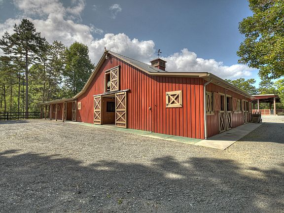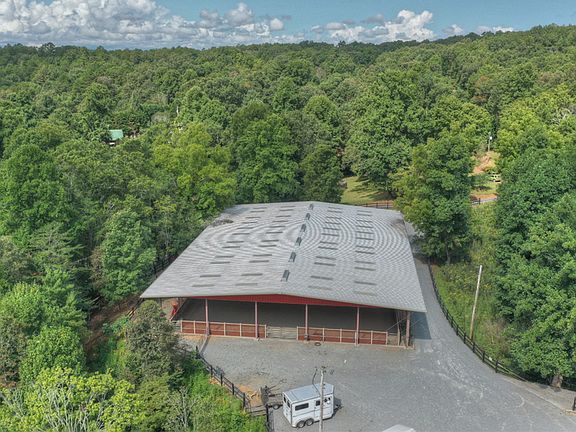 Crossfire Farms" produced Champions in this Impressive Equestrian Complex surrounded by (over 750') of Rushing Creek front in the Backdrop of the US National Forest. Thoughtfully Planned 5400 Sq Ft Horse Barn w/Concrete Flr (Rubber Matts thru-out). 21 STALLS w/Fresh Water & Lighting in Each, Heated & Cooled w/Huge Open Loft, Wash Out Area, Tack Rm, Feed Rm,Kitchen,Bath & Laundry.2 Drilled Wells (1-Barn & 1-Pastures) 150 X 100 COVERED Riding Arena w/Crush & Run Base.TREE HOUSE (32 X 24) w/Kitchenette, Heat/Air, Centerpiece Custom FIREPLACE, Screened"Back" Porch overlooking Pasture & Creek Plus 12 X 20"Front" Porch. 37 X 25 Hay Barn (Concrete Flr) will hold up to 1500 hay bales. 20 X 12 "Stall Shavings" Building (Concrete Flr). 20 X 10 Donkey Shed. Firewood Shed (5X6).TWO Hard-Wired Generators. 8' Metal Gates w/Stone Walls Entry & Completely Fenced in