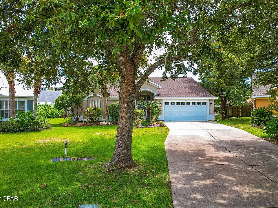Location! location! This exclusive neighborhood is only one minutes from the beach and Pier Park. The demand is high, and the supply is scarce as homeowners love Summerwood with its low HOA fees, sidewalks, pool etc. Beautiful 3 bed, 2 bath home tiled throughout except bedrooms. Large living room overlooking the open floor plan kitchen with breakfast bar and stainless steel appliances. You have a formal dining area and a den (13x10). Separate laundry room and a two-car garage with cabinets and workshop area. Split master bedroom with walk in closets. Back patio is fully screened-in. Nice cozy yard and sprinkler system with the back yard fenced in. Home sits on a cul de sac with walking distance to Pier Park, restaurants and beach. Roof installed in 2019. Great primary/second home.