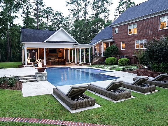Located in the one of Thomasville's most desirable neighborhoods, this recently renovated classic southern home contains every indoor and outdoor amenity imaginable. Close to hospitals, schools, Glen Arven and downtown, this beautiful home features an updated kitchen with marble counter tops, stainless appliances, double ovens, large oversized den, formal living and dining rooms, multiple laundry rooms, updated bathrooms, playroom, new saltwater pool, and an incredible outdoor kitchen and living space that is perfect for entertaining! Additional features include downstairs master bedroom and bath with double vanities, large walk in closets, wainscoting, pecky cypress ceilings, walk in pantry, custom cabinetry, and professional landscaping. This stunning home consists of 4 Full bathrooms, 2 Half baths, and over 5000 square feet! A large unfinished space above the three-car garage provides additional area for a large media room, playroom, or mother in-law suite.