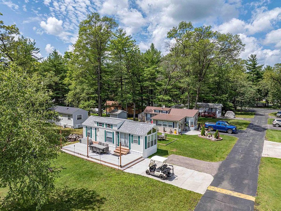 THE PERFECT VACATION HOME DOES EXIST!! Recently renovated stunner with a new roof, new furnace/air conditioning and updated HVAC, all new flooring, renovated bathroom, upgrades to the kitchen including all new stainless-steel appliances, a new composite deck, new light fixtures throughout, as well as a new Nest thermostat. This home is being sold turnkey with everything included, EVEN THE GOLF CART!! Take your golf cart down to one of the two outdoor pool areas and/or indoor pool. Play a round of golf at the 9-hole golf course. When you do not feel like utilizing your beautiful kitchen, ride down to the bar and grill. You are only five minutes from downtown Dells and all it has to offer. This home does have the capability of being year-round. **Short term rentals not permitted**