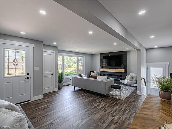 Welcome to 112 Wood Street in Brantford’s desirable North End! This fully renovated 3+2 bedroom, 2 full bathroom bungalow is a perfect blend of modern style and everyday functionality—ideal for families or first-time buyers. Step into a bright, carpet-free interior with contemporary finishes throughout. The open-concept kitchen features quartz countertops, a generous island, and brand new stainless steel appliances. You'll also love the two included wall-mounted TVs and electric fireplaces, adding warmth and convenience to the living spaces. Additional updates provide peace of mind, including a new A/C (2024), updated electrical panel, and some new windows and doors. Outside, enjoy a covered back deck, a fully fenced yard, and low-maintenance landscaping—perfect for kids, pets, or hosting summer BBQs. Situated in a quiet, family-friendly neighbourhood, this home is just minutes from shopping, restaurants, schools, parks, and easy highway access.