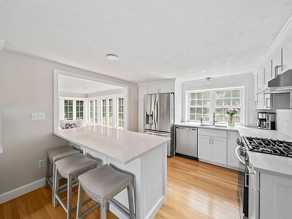 Welcome home to this meticulous Cape style home nestled in a peaceful neighborhood in the heart of Marshfield. This spacious home has 2400 SF of living space and is ready for its new owner - featuring a sparkling new kitchen and baths, gleaming wood floors and many updates. The first level has an open layout conducive to comfortable living and entertaining with a cozy fireplace living room and a gas stove in family room adjacent to kitchen. Upstairs features three generous bedrooms and a full bath. The newly remodeled lower level provides more great living space and abundant storage. The backyard with an in-ground pool and entertaining deck is the perfect oasis for enjoying the spacious level fenced in area. Energy efficient solar panels. Close to beaches, shopping and all that Marshfield has to offer!