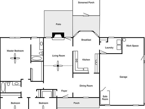 Ceramic tile flows through the kitchen, breakfast room and laundry. Crown molding and chair rail accent the formal dining room. The comfortable family room features a vaulted ceiling and fireplace. The master suite includes a generous walk-in closet and private bath with double sinks. Another walk-in closet is located in one of the two additional bedrooms. An open patio and screened porch provide options for outdoor enjoyment. The spacious backyard is surrounded by a privacy fence. The 4' x 6' safe room in the garage provides secure storage as well as a place to escape during inclement weather. A nook in the garage provides an area for workspace or additional storage.