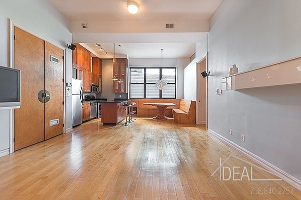 Price: $3,700 Neighborhood: Bushwick Address: 101 Wyckoff Avenue Bedrooms: 1 Bathrooms: 1 Unit Features: Outdoor Space (Shared Roof Deck), Pets Accepted (On approval), Washer / Dryer (In unit) Building Features: Prewar Description: Come see this rare, mostly-furnished luxury designer loft just steps from an L train station where you can actually find a seat on a NYC bound train! This bright and open space boasts nearly 12 foot ceilings and is filled with beautiful features created by its owner - a well known industrial designer recently lauded in Architectural Digest. This bright and open space was designed with entertainment and storage in mind. Numerous storage options abound, complete with over 100 cubic feet of lofted storage cleverly hidden by shimmer screen, accessible by an authentic Brooklyn-made rolling library ladder! The modern stainless steel, granite, and marble-laden kitchen opens up to simultaneous TV viewing and conversing with guests. Finally, enjoy your choice of beautiful views of the quiet, inner courtyard or escape upstairs to the brand new roof top terrace where you can view amazing sunsets over the NYC skyline spanning from the Freedom Tower to the Upper Eastside all from your own building! Super convenient location allows you to be only minutes from accomplishing all daily errands while social life abounds with nearby cafes, distinguished eateries, bars, galleries, and Maria Hernandez park. The Dekalb L is right outside your door making travel to and from simple.