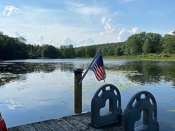 on Quiet/Private Lake near Promised Land State Park. Home features Large, Open, Eat In Kitchen w/Beautiful Lake Views, Living room with Brick Fireplace, Cozy Sunroom & Covered Deck plus 5 Bedrooms & 2 Full Baths. Dock Included.