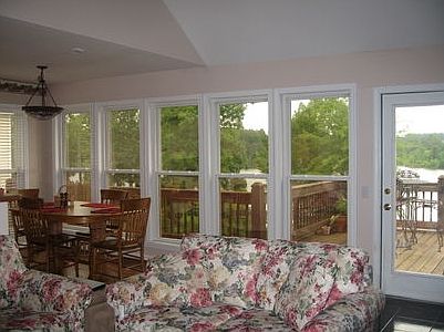 This is a 3100 square foot 4BR/3BA home located on a pennisula on beautiful Lake Rabon in South Carolina. The home is situated on a cove with a million dollar view of an island and the backdrop of yet another cove across the lake that doglegs to the left. This panorama is punctuated by untouched cascades of wooded foothills on the sunset side of the lake. Each of the homes in this subdivision are situated on sites which include open lots across the street upon which further building is restricted. This insures the natural beauty and privacy of all the homes on this pennisula. This home has a kitchen, dining room, master bedroom and great room with cathedral ceiling, closeted office or 5th bedroom, and den, as well as a screened porch and deck, all of which overlook the lake. The home also includes a recreation room, wine cellar, workshop and a two car garage. In addition there is a full well lit attic with walk up access(part of it can be finished out into another room), an inground sprinkler system, an alarm system and of course a dock. The subdivision has a clubhouse, two tennis courts, a boat access ramp and a pier and dock. The home is located about 12 minutes from the restored historic square of the County Seat of Laurens, SC and is about 25 minutes from the suburbs of the greater Greenville, S.C. area. The mountains are about a one and a half hour drive while the coast and such destinations as Hilton Head Island, Charleston and Kiawah Island are about a three and a half to four hour drive.Currently, mapquest, google, and yahoo all contain errors on the mapping of this house's location. Please call to get accurate direction.Additional property info: http://www.forsalebyowner.com/listing/4-bed-Single-Family-home-for-sale-by-owner-112-Yacht-Dr-29360/20689246?provider_id=28079