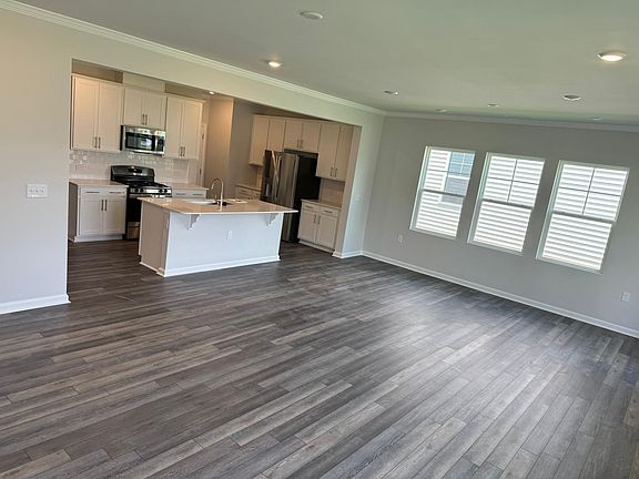 Inviting layout flows from the entry through the modern kitchen into the spacious Great Room and dining area
