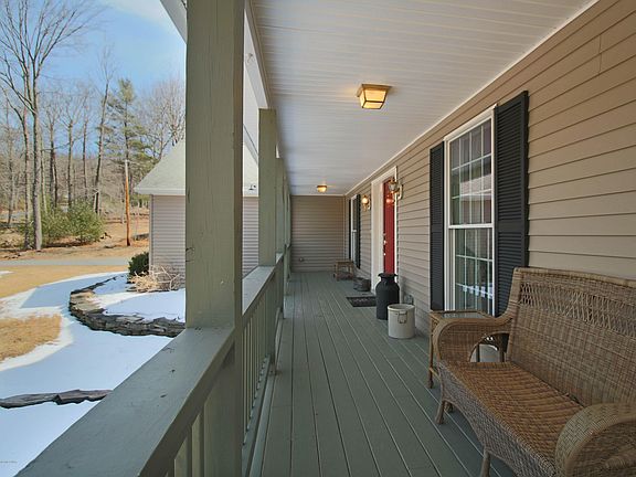 Gorgeous 4 bedroom Colonial close to the Village of Milford in the Pocono Mountain Woodland Lakes. Boasting 3,647 finished square feet, this spectacular home truly is a must see. From the wrap-around covered porch enter in to the traditional foyer to find a formal living and dining room. Continue in to the expansive family room where you'll find a wood burning fireplace, soaring ceilings, and tons of natural light. Enjoy your 11' x 13' bay-window-breakfast nook overlooking a 400 square foot deck. Modern appliances, gas cooking, snack bar, and TWO butler pantries make entertaining a breeze.