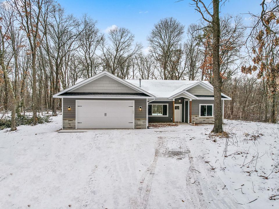 Beautifully designed new construction one-level home nestled on almost 2 acres of oak forest. Along with the private/quiet neighborhood, you'll enjoy the upgraded comforts such as radiant in-floor heat, 2 mini-splits, 9 ft ceilings with cove ceiling in primary bedroom, oversized heated garage with floor drain, on-demand hot water heater/boiler combo, custom cabinetry throughout, gas fireplace, white oak/marble vanities and island with level III quartz countertop, fingerprint resistant stainless steel appliances, walk-in pantry, washer, dryer, solid core doors, tiled shower, Kohler soaker tub, exterior hot/cold hose bib, solid cedar front posts. This convenient location is within a 10 minute drive to the amenities of Baxter/Brainerd. Relax in the mornings on your front porch and evenings in the spacious backyard!