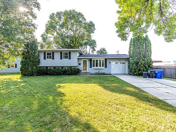 Charming split-level home in a convenient South Fargo location. This home is well maintained and move in ready! All 3 bedrooms are on upper level. A sharp kitchen with stylish finishings and a bathroom remodel that won't disappoint! Steel siding and nice size backyard with fence. Gas forced air heat and must have central a/c! You'd be hard pressed to find a nicer single-family home at this price point. All window coverings, deep freeze, sheds, playground and bar stools included.