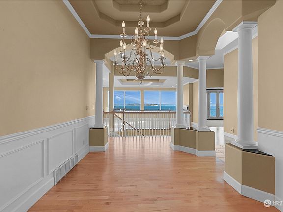 This is Mukilteo living at its finest! This home has been thoughtfully designed to incorporate stunning views of the Sound, Whidbey Island, and ferry from most of its rooms. Experience open-concept living spaces that showcase designer finishes (columns, coffered ceilings, wainscoting, jetted tub, in-ceiling speakers, etc.), chef's kitchen, and spectacular wrap-around VIEW deck. Huge primary bedroom features gas fireplace, walk-in closet, 5 piece bath. The beach, Lighthouse Park, ferry, and 8 restaurants are just blocks away. Enjoy chowder at Ivar's, wine at Cabernets and IPAs, coffee at the Red Cup - just some of Mukilteo's favorite locales! RV/boat parking, sprinkler systems. Finished garage floor. Come see this beautiful home today!