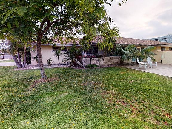 This corner lot embodies the 'American Dream' with a 4 bedroom, 3 bathroom home with a single parking garage and two car driveway, all bordered by a white picket fence. This home comes with plenty of outdoor living space. Located on a large grassy lot, there is a spacious front yard, large back patio (which includes an outside dining table with barbeque), and side yard adorned with citrus trees. The front yard is outlined with a white picket fence and the back patio and side yards are completely fenced in offering plenty of room for the kids or dog to play and for adults to entertain.