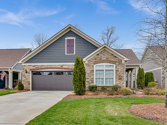 Fabulous 55+ community w/clubhouse, pool, fitness center and easy access to I-485. Single story home w/lawn & exterior maintenance included. You will love entertaining friends in the spacious Family Room with open floorplan to kitchen & dining area that overlooks lovely private, fenced courtyard & stone patio. Wonderful kitchen w/large center island & bar seating. Stainless appliances, granite countertops and tile backsplash. Gorgeous Hardwood Floors, Food Pantry & Trey Ceiling. OFFICE with french doors and ceiling fan. Master Suite features access to cozy screened porch and courtyard. Master Bathroom has zero threshold tile shower, linen closet and comfort height dual sinks. Spacious secondary bedroom and bathroom. This home has lots of storage space and a 2 Car Garage w/workbench, shelves & keypad entry. You do not want to miss this one!