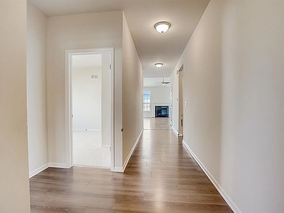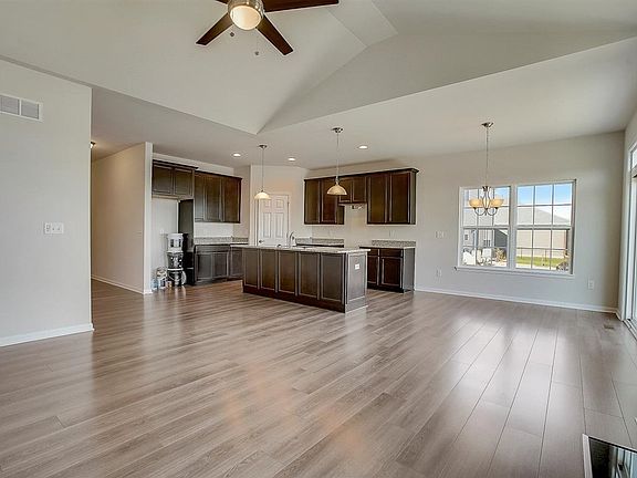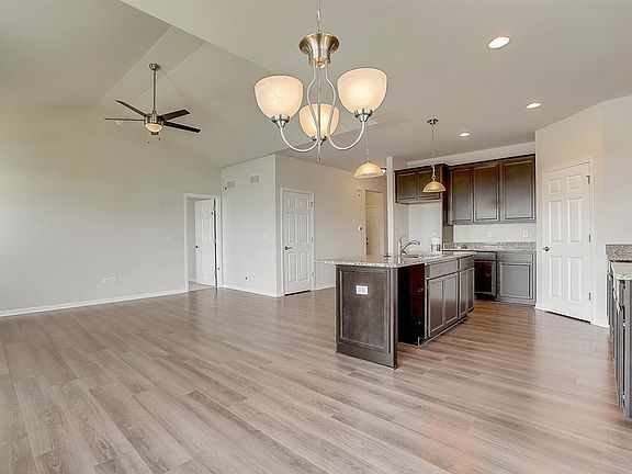 New Hickory Ranch floor plan on premium pond lot for privacy and nature at its best. Open, single floor living with over 1600 sq. ft., 3 bed/2 bath/2 car garage and full, unfinished basement for storage or future living space. This new plan will be loaded with upgrades: Direct vent fireplace, vaulted Great Room, 8' high garage doors, 15' x 15' poured concrete patio, 42" upgraded kitchen cabinets with granite counters and stainless steel appliances, wide plank Inhaus low maintenance laminate throughout most of the living areas, upgraded tile/lighting and so much more. This gem on the pond won't last!!!
