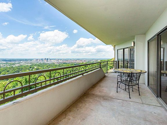 Regency Terrace is a gated community only minutes from downtown. Also close to Homewood and Mountain Brook. This is such a beautiful complex, so welcoming! A rare opportunity to own this condo with a stunning view of Birmingham. Enjoy your morning or evening time on the spacious patio. The main living area and both bedrooms have a view and access to covered patio. Stunning parquet floors and wooden bookshelves make the great room a warm living area. Slate floors throughout much of the condo add a wonderful touch. The kitchen has a new microwave & refrigerator that remains. Laundry room is off the kitchen. The master bedroom has built in shelves & the bathroom has double vanities. Large walk in closet with custom shelving. The other bathroom has a tiled tub/shower combo. The lobby is beautifully decorated and a popular place for residents to socialize. Residents also have access to pool, workout room, sauna, steam room, library & party room. Covered parking & private storage area.