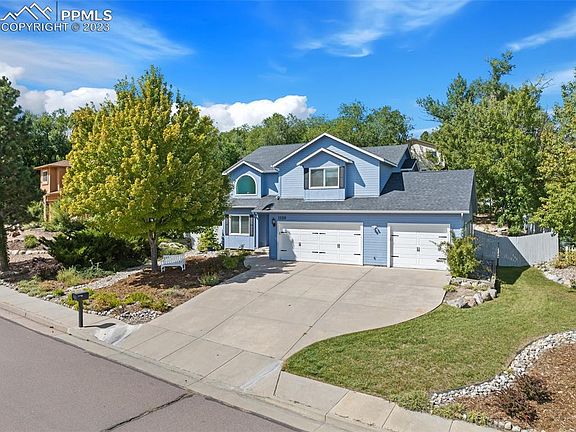 Impeccably maintained, gorgeous home in fantastic location. Walking across the street leads you to acres of open space, hike and bike trails in the spectacular Bear Creek park. Privacy, comfort, bright, ease of living is what you experience in this home. Nothing is needed, as there is a new roof, new windows, new siding, new gutters, new gutter covers, new paint, new fence, new refrigerator and a new range/cooktop. All square footage is above grade, no dark and dreary basement. The inviting living room has a window seat and flows into a dining area with a coved ceiling and delightful view of gardens. The spacious kitchen features new appliances, gorgeous high quality white cabinets, tons of counter space and an additional eating area. Flowing from the kitchen is a large family room with gas fireplace and quality views of backyard. A large walk-in pantry, beautiful powder room and bedroom/office complete the main level (this bedroom is non-conforming as there is no closet). The majority of the home's flooring are oak hardwood. Climb the beautiful staircase and you find 3 huge bedrooms. The master has his-and-hers walk-in closets and an enormous 5-piece bath. Two more bedrooms feature large walk-in closets and comfy window seats. The bedroom closets are all built out. You also find a full bath with double vanity and a convenient laundry room on the second level. A private fully fenced backyard with large concrete patio flows from the kitchen eating area; the terraced yard is planted with beautiful perennials and is low maintenance. A cool playhouse is tucked into the corner of the yard for children to camp (or can be used as a potting shed) while you relax in the large hammock. A large 3 car garage is attached with plenty of storage space and a work bench. Less than a mile from award-winning Cheyenne Mtn schools; close to the playing fields, pickle ball, tennis and picnic areas of Bear Creek park, this is a wonderful spot to call home.