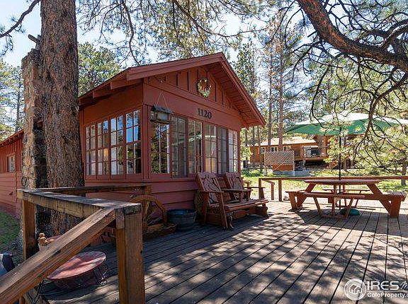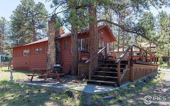 Absolutely cute 1939 Estes Park seasonal cabin, with wonderful large deck on .35 acre treed lot. Lovely windowed space off living room to let in the views, & beautiful rock fireplace to gather around. This sweet cabin offers a full bath, 2 BR and an eat in kitchen with fresh interior paint throughout. Your own little piece of paradise located only a short drive from the entrance of Rocky Mountain National Park. Enjoy as your vacation home, investment property, or make it into your cabin home.