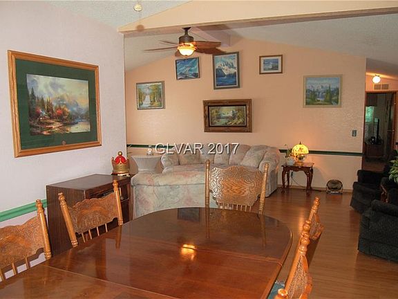 Bright, Beautiful home in Pahrump offers 3 bed, 2 full bath, & over 1800 sqft of living! Formal family room, formal dining, living room with fireplace, & large kitchen. Master suite has 5-piece bath, & great natural light. high ceilings throughout make this open floor plan feel even bigger! Over an acre, fully-fenced backyard, covered patio, & additional garden sheds. Call for more information!