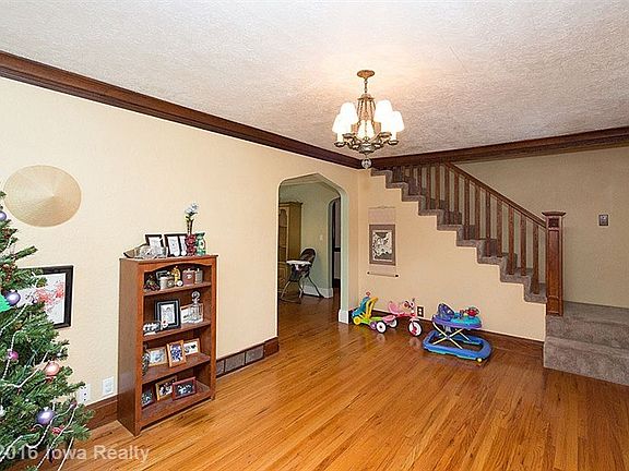 Terrific brick home located in a great Southwest neighborhood of Des Moines. The first floor includes hardwood floors, a formal living room (fireplace is non-working), formal dining room, and a kitchen that opens to a large first floor family room with fireplace. There is also a bedroom and a full bath. Upstairs is a large master suite with numerous built-ins and another bedroom. There is newer carpet as well. In the lower level there is a family room and a finished laundry room area which includes the washer and dryer. There is also another bath and lots of storage. There is a newer high efficient furnace along with a newer sewer and water line to the home. On the exterior there is a huge 2 level deck and the rear yard is fenced. There are 2 driveways and a large garage.