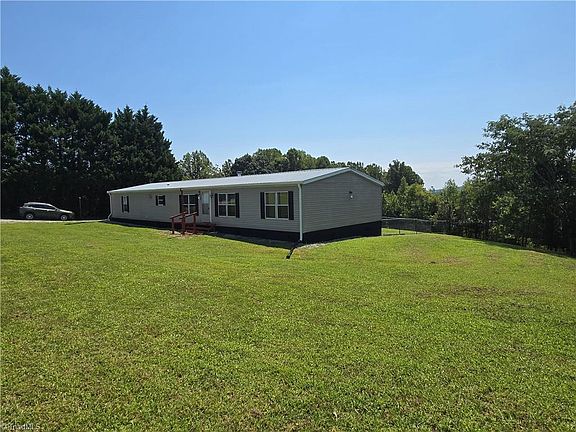 Priced to sell! Spacious 4 bdrm and room to roam on 2.5 acres - cleared yard with backyard fence and woods. Spacious home has a metal roof, open concept living area with kitchen island and wood burning fireplace in the den, 4 bedrooms and 2 baths. Walk out sliding doors from this space to deck. LVP throughout the home. All appliances convey including new Washer/Dryer stackable and chest freezer. Whole house water purifcation system is newer. Some views of Hanging Rock through the trees - better view in winter. Interior is fresh with new paint throughout. One car garage and extra parking in driveway. 220 available just outside of garage. HVAC has new compressor. Window treatments stay as well as newer riding mower with bagging attachment. Only 7 miles to Hanging Rock State Park and less than six miles to Dan River access point for canoe or kayak. Recreation abounds! Updates that Owner has made since 2023 is attached.