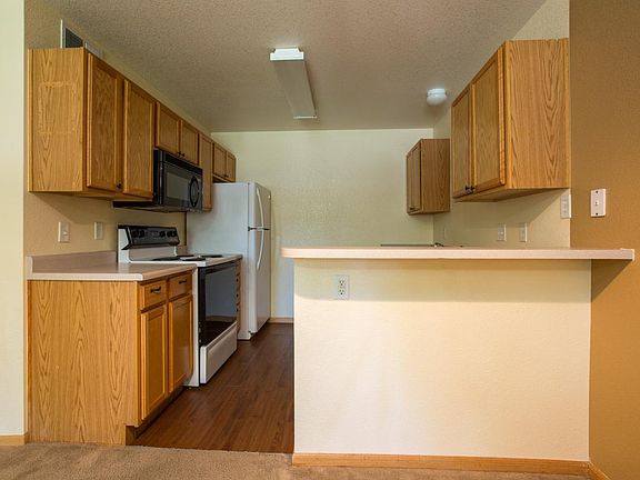 Welcome home! Many upgrades- paint, carpet, hardware, wood plank flooring, etc! Open living room with cozy gas fireplace, kitchen opens to dining area, 2 large full bathrooms, one car garage and pre-wired for security.