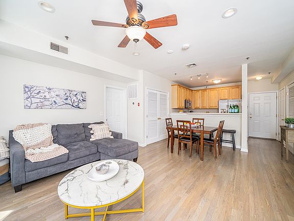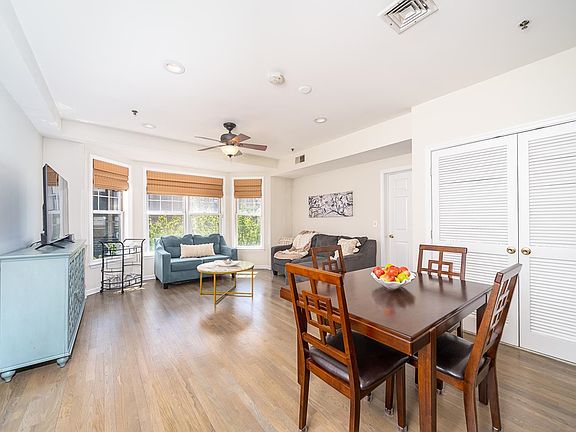 Make this immaculate two-bedroom, two-bathroom apartment in Uptown Hoboken your new home. Upon entering the home, you’re welcomed with new gray finished hardwood floors and a floor plan perfect for entertaining. This well thought out home features a breakfast bar that comfortably seats four and overlooks the combined living and dining space. The living space has fantastic natural light, bay window and ceiling fan with dimming light. The kitchen has abundant counter and cabinet space with brand new GE appliances. The primary bedroom fits a king-sized bed comfortably and has room for an office or reading nook and is completed with a walk-in closet and bathroom. As you enter the second bedroom, you have a bath en-suite with new glazed tub and walk in closet. This home features tons of natural light, stacked washer/dryer in unit, two walk in closets and an oversized coat closet, recessed lighting, nest thermostat, and elevator in building. Enjoy a summer night grilling on the shared outdoor space or even build your own garden. Condo includes an indoor parking spot in the attached garage, central heating and cooling, and fitness center on the ground level. Perfectly located, NYC bus stop across street, walking distance to ferry and trains and within blocks from ShopRite and Trader’s Joes, Columbus Park, and a short stroll to Washington Street, shops and restaurants. Enjoy city living at its finest with all the modern-day comforts.