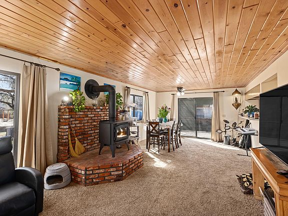 Looking for a Mountain Home close to the city, well 1120 Coldwater is it. This gorgeous 3 bedroom 2.5 bath home sits on a flat corner lot with fantastic views. Recently painted exterior and wrap around deck greet you. The large and open living and dinning room have plenty of light and a woodburning stove as well as a couple sliding doors to access the deck. The ceiling is a show stopper with stained wood panels. Kitchen has a reach in pantry and a breakfast bar, plus access to the attached garage space. Upstairs you will find 3 good sized bedrooms and 2 full baths all with spectacular views. The property has a shed that stays and many fruit trees. Don't wait to call this home your own.