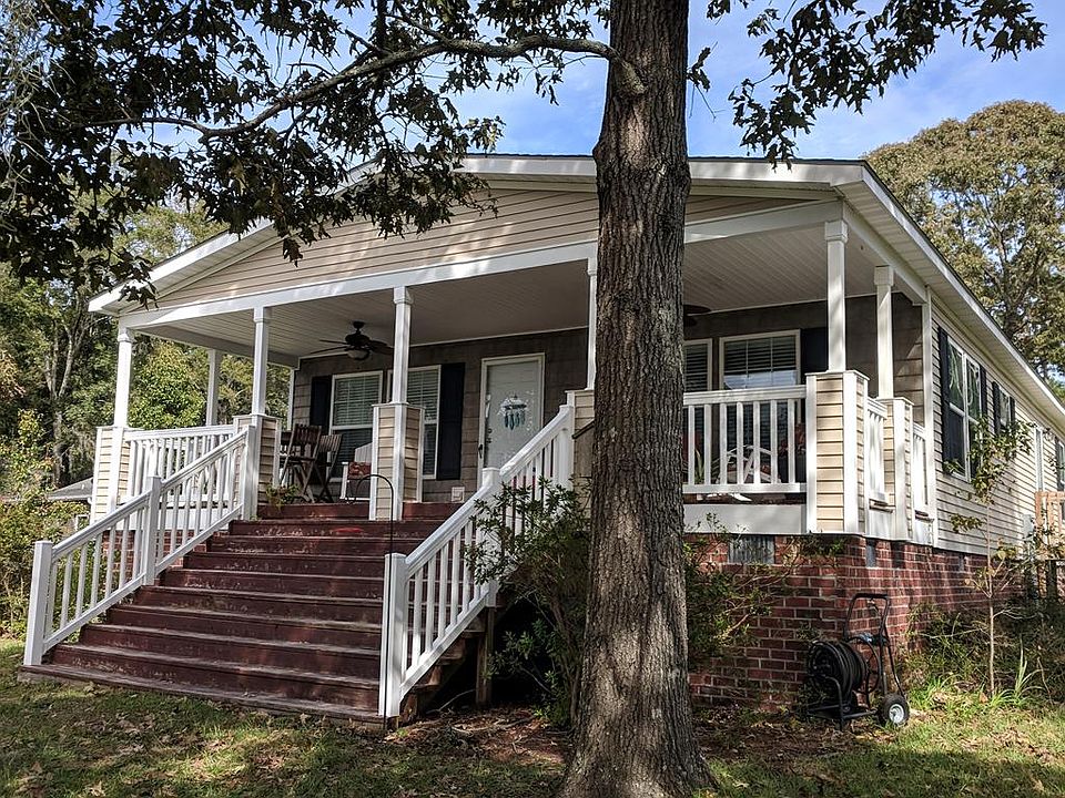 Living the Life at the Lake! This home features a front porch with endless views of Lake Marion! Open floorplan, this just-like-new dwmh features expansive views from the living, dining & kitchen areas!Enjoy living at the lake from inside the house with these views! DEEDED property....you are buying house and land. Home features 3 br, with walk-in closets & 2 baths. Exterior is vinyl and brick.