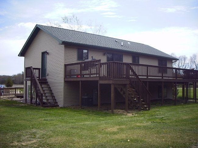 Stunning Northwoods home! Step into the entryway & take off your coat & boots. Go up to the main level where this 9 year old home offers a beautiful kitchen w/oak cabinets & stainless appliances, dining room w/ patio doors leading to the 12x44 wrap around deck, master bedroom w/walk in closet. The lower level offers 3 additional bedrooms & a full bath to be finished, all fixtures are included. A 2 car detached garage, 30x42 & a 30x40 pole building, 10x12 shed. Hike the trails going back to Carter Creek.