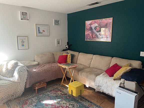 Must be LGBTQ+ friendly and a dog lover. PRIVATE ROOM AND BATH in a lovely 3 bedroom/3bath home to be shared with the owner's daughter, her wife and their adorable and well behaved 12 lb. dog. Owner is not currently on-site. You would be renting an upstairs bedroom and private bathroom. The room is furnished with a bed, large dresser, side tables, TV, and closet. Laundry on-site. The window overlooks the culdesac, which is part of the Rancho neighborhood, so you'll likely see some horses walking by (and the occasional donkey:) Neighborhood also has a great coffee shop down the street, and a nice little Mexican restaurant on the corner, Pavilions, dry cleaners, UPS and nail salon, all within walking distance. Surrounding streets are safe, tree-lined and walkable to Disney Studios. Park nearby as well (which has basketball courts and tennis courts). Parking will be in the driveway or street parking in front of the house. All utilities and internet are included in rent. Shared entrance, keyless entry. Minimum rental, 3 months, maximum one year lease. No smoking allowed.