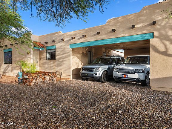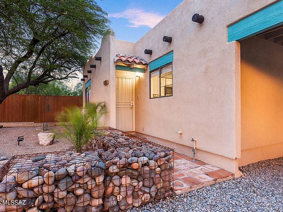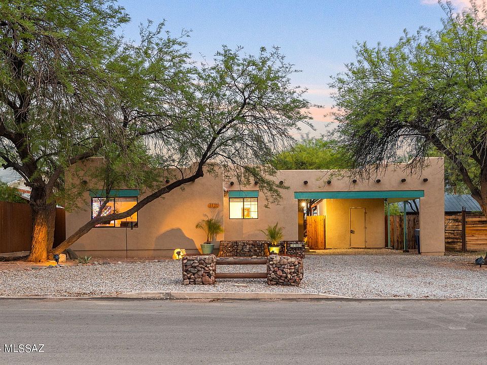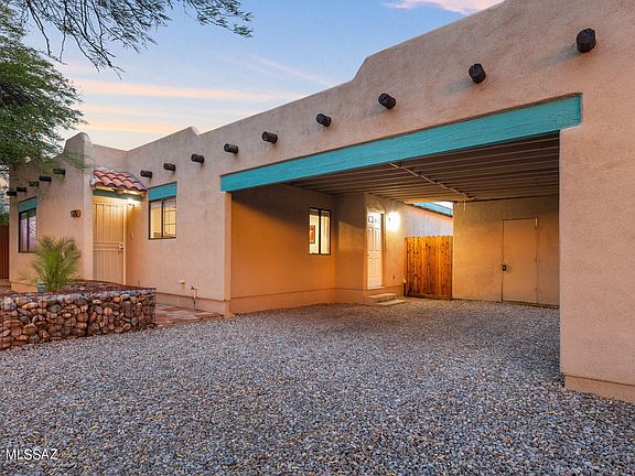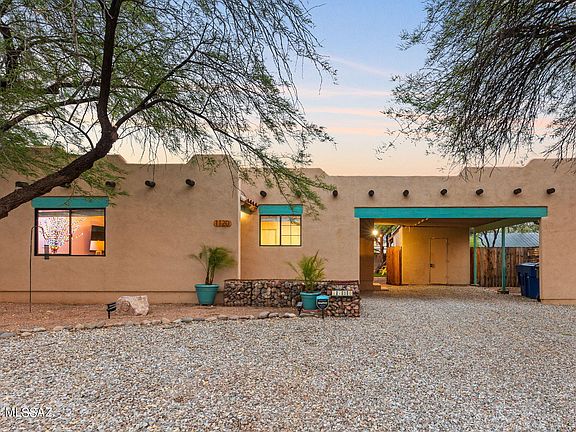 Welcome to this captivating 3 bed /2 bath Santa Fe style home offering a unique blend of Southwest charm and modern updates. Built in 1989 and recently updated, this property presents an exceptional opportunity for both homeowners and investors alike. Located just minutes from the University of Arizona, Banner UMC, and the Mountain Ave bike path, convenience meets comfort in this prime location. Step inside to discover stained concrete flooring throughout --perfect for easy maintenance and a contemporary aesthetic - and no interior steps! Upgraded windows, skylights, and ceiling fans enhance the home's energy efficiency and comfort. The kitchen features newer stainless steel appliances, painted cabinets with new hardware, new granite countertops, and offers convenient access to a 2 car carport with an additional storage room. New bathroom vanities add a touch of luxury, complementing the updated aesthetic throughout. The spacious living room boasts a cozy fireplace, ideal for gathering with family and friends. The large primary bedroom includes an en suite bathroom, walk-in closet, and sliding door access to the backyard retreat. Outside, the expansive backyard is a haven for entertainment and relaxation, featuring a new tiki pergola, hot tub, brand new artificial grass, and metal planter boxes perfect for gardening enthusiasts. An established BBQ area completes the outdoor experience. Don't miss the extended lot behind the block wall, offering potential for additional parking, a guest house, or even a garagemaking this property a versatile investment opportunity. Whether you're looking to settle into a charming home or seeking a lucrative investment opportunity, this property offers it all.