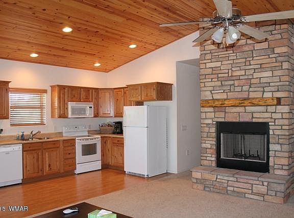 This is an adorable two bedroom two bath cabin in the very nice, newer subdivision of Cedar Ridge. It's heated with efficient natural gas, has a wood fireplace with gas starter in the vaulted, wood great room. Home has a large covered deck and metal roof, also there is a storage room under the house.