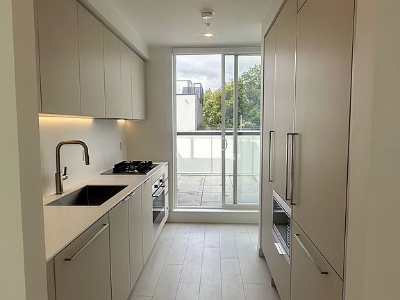 $4000 / 2bed 2bth /1390ft, Rooftop Deck, AC, Undgr Parking, Brand-new Discover Modern Urban Living in Historic Strathcona! Available October 1st: Be among the first to experience luxury living at the brand-new Assembly complex in Vancouver's vibrant, artistic, and historic Strathcona neighborhood! Unit Highlights: Style: Enjoy modern luxury with a touch of urban charm in this Bauhaus-Inspired Townhome Dramatic Multi-Level Layout: Start at the lowest level entry with coat closet off the interior courtyard. Ascend via a striking staircase to a mid-level featuring two bedrooms, two bathrooms, and family-sized in-suite laundry. The third level boasts an airy living room with southern views of Strathcona Park, a dedicated dining area and Italian-imported kitchen with integrated LED lighting, soft-close cabinets, and top-tier appliances. The 10x10 balcony off the kitchen (with natural gas hookup for bbq) will be is perfect for alfresco dining. Entire top (4th) floor is a private rooftop deck. Stylish 2-Bedroom Townhome: The primary bedroom boasts a south-facing view, a charming Juliette balcony, a spacious triple-door closet, and an ensuite bathroom. Ensuite features dual undermount rectangular sinks for a sleek modern look, and a frameless glass shower enclosure with rain shower head and handheld wand. Second bedroom also features a Juliette balcony and is adjacent to a modern bathroom with a soaking tub with European porcelain tiled floors. Generous Outdoor Spaces: Head up the tippy-top staircase to see the star of the show, your own rooftop terrace! Complete with landscaping planters and 360-degree city views. Utilize the gas, water, and electrical hookups to create your own urban oasis. Loads of Natural Light: Large windows on both north and south sides, and operable skylights for plenty of natural light and cross ventilation. Comfort: individually controlled AC and heating for year-round climate control Building Amenities: Fitness Centre: State-of-the-art gym. Unique Courtyard: Enter by way of a stunning ceiling mural by the renowned artist Ola Volo, to an interior courtyard with gardens, play area, and lounge chairs. Convenient Features: Secure underground parking, storage locker, and a minimum 1-year lease term. Family-Friendly: Seymour elementary right across the street Pet-Friendly: One pet considered. Location Benefits: Walk Score 93: Walker's Paradise with shops, services, parks, and recreation right at your doorstep. Transit Score 75: Excellent transit options. Bike Score 94: Biker's Paradise with extensive bike lanes and pathways. Included in Rent: Gas & Hot Water Layout: Interior 975 Sq. Ft. Exterior 415 Sq. Ft. 1390 Sq. Ft. total square footage Don't miss this opportunity to live in a stunning new home with all the conveniences of downtown Vancouver while enjoying the historic charm of Strathcona. Contact us today to schedule a viewing and make this modern sanctuary your new home!