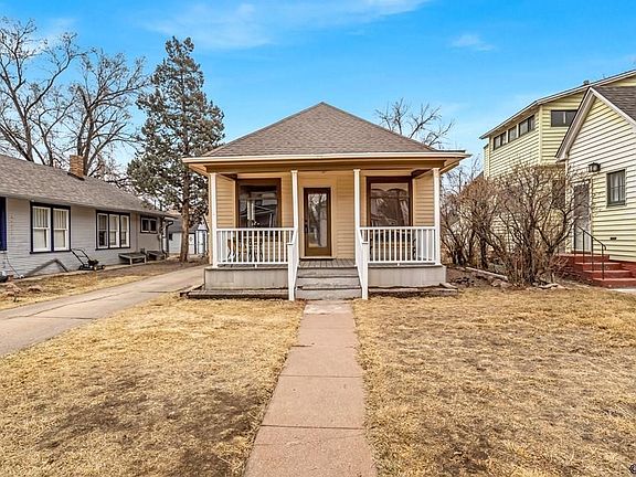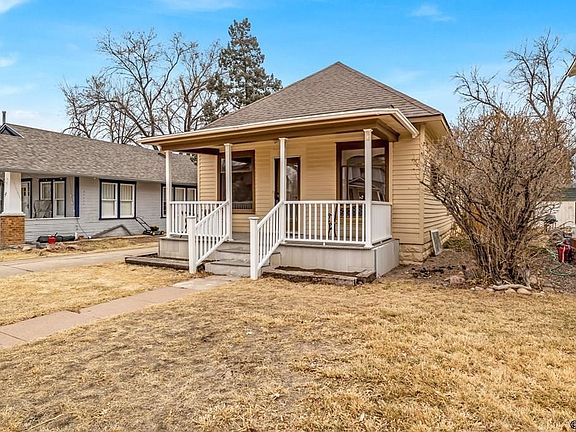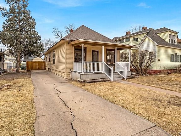 Come see this 1052 sf, 3 bedroom, 1 bathroom home on Greenwood Avenue, close to historic downtown Canon City, parks and schools! An inviting front porch with white columns & handrail and an original tongue & groove ceiling say "Welcome" to you and your visitors; there's plenty of room there for a petite table & chairs and a porch swing! Lots of nice turn-of-the-century features: original hardwood floors, tall ceilings, big front windows for lots of natural light, an arched pass-through and built-ins throughout. A back entry acts as the perfect mud room, and is also a laundry room with a stacking washer and dryer that stay, and don't miss the built-in broom closet. Also to the back of the house is a covered back porch and a Tuff shed on concrete with power. A permitted new fence with a double gate was just built, and there are new water and drain lines. Inside you'll find a dining room/living room combo, and through the archway is a nice-sized kitchen with plenty of room for a breakfast table. The kitchen has been revitalized w/ a new deep sink & faucet, and new dishwasher. Three bedrooms with ceiling fans, and a full bath w/ updates complete this home! The front yard has a sprinkler system. Off street parking. Alley access. All mechanical is in the basement for easy access. Combined with its historic charm, its recent improvements, and your new ideas, this home is ready for you to make it your own! Schedule your showing today!