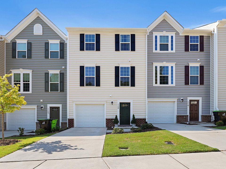 Welcome to 1120 Helms St, a modern and beautifully designed townhome in a sought-after Durham location. Built in 2021, this stylish residence spans three thoughtfully planned levels. The entry-level features a convenient attached garage, driveway parking, and a versatile flex space—perfect for a home office, fitness area, or creative studio. Upstairs, the main living area boasts an open-concept design that seamlessly connects the living room, dining area, and contemporary kitchen. The kitchen includes a spacious island, sleek finishes, and direct access to a private deck—ideal for entertaining or relaxing outdoors. The top level offers well-appointed bedrooms, including a serene primary suite with ample closet space and a modern en-suite bath. Located near major commuter routes, shopping, and dining, this home offers comfort, style, and convenience in one perfect package. Don't miss your chance to make it yours!