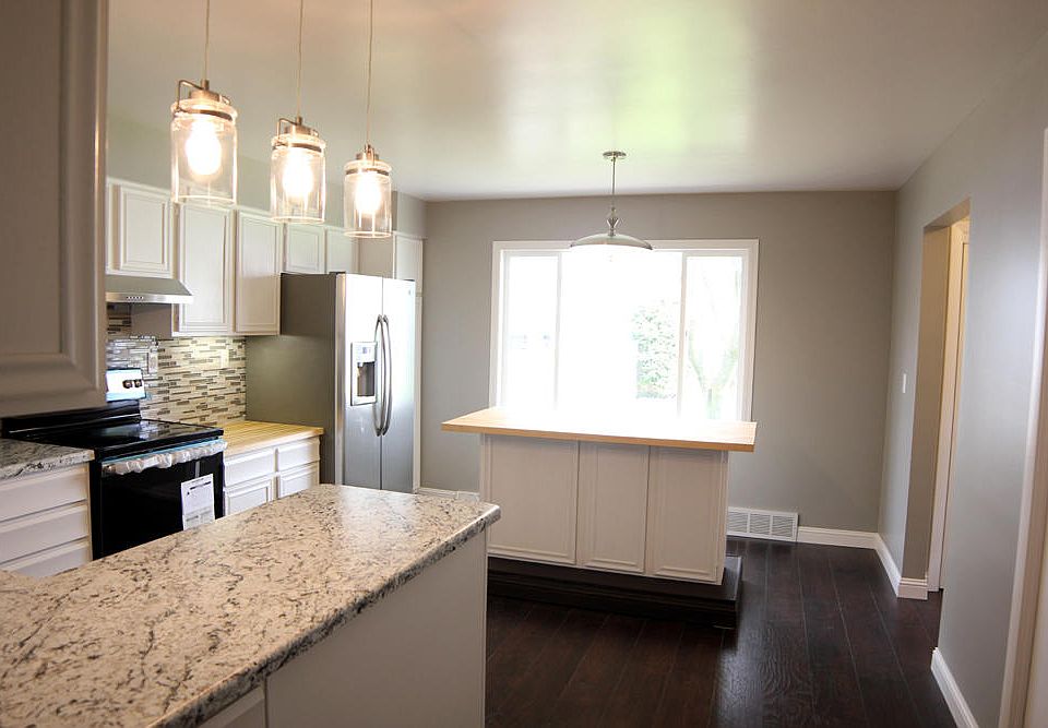 Tastefully Renovated 3+ BR,2 BA home.This home features MANY quality improvements boasting an updated kitchen w/new counters w/stainless steel double sink,mosaic tile backsplash & a butcher block island PLUS newer stainless steel appliances.Lg LR & adjacent DR,office for the professional,a main floor BR & FF laundry room.Main BA has been completely remodeled w/custom tile surround,new tub,vanity & sink w/tile backsplash,mirror,toilet,lighting & plank-tile floors.2nd floor has 2 spacious BR & loft/game area. New garage floor,door & opener.New vinyl siding,front porch w/rails,roof & windows.