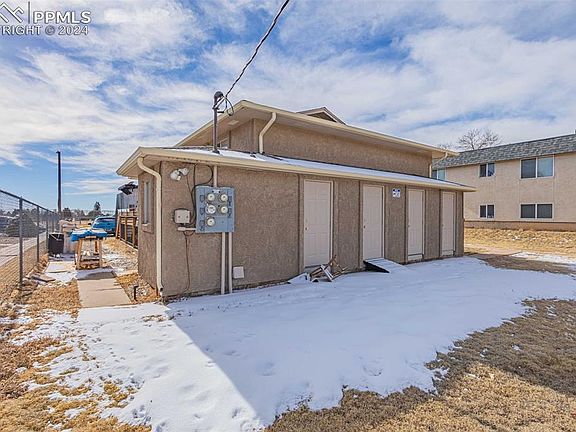 Great location on the west side of I-25, near Garden of the Gods, and 2 miles to the University of Colorado at Colorado Springs. Located directly across the street from Jackson Park, which provides a nice open area with mountain views. This 4-plex is stucco and brick with newer decking, newer roof (2018), 2 newer large-capacity water heaters (2020), community laundry room, and designated storage closets for each unit. The large rear yard with fencing backs to a parking lot with street access behind. There is ample room for a garage or carport to be built. All 4 units offer a living/ dining area, kitchen with access to the back porch/deck, 2 bedrooms and a full bathroom. All units have front and back entry with decking (upper units) or covered porch areas (lower units). Units have had long term tenants (ranging from 8 years to 3 years), great rental history.