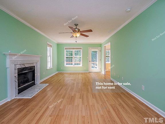 This Raleigh cul-de-sac home offers a two-car garage, a covered front porch, an open back deck area, stainless steel appliances, a fireplace, a walk-in master closet and a master bathroom with dual sinks and a separate shower and tub. Fireplace and chimney to convey as-is, no known defects. Windows with possible blown seals to convey as-is. This home is vacant and cleaned regularly. "This home has been virtually staged to illustrate its potential! Thanks for viewing!"