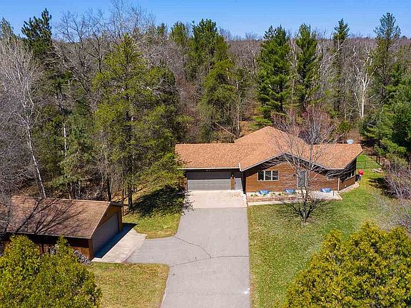 Beautiful and secluded ranch home with everything you need on ONE LEVEL! Being privately nestled on just over 2 acres in the Town of Hull means privacy, peace & quiet and a better-than-city property tax rate while maintaining great proximity to Stevens Point & I-39 access (without the highway noise)!Home has 4 bedrooms, 3 bathrooms and a 2-stall attached garage as well as an ADDITIONAL 20' x 26' 2-stall detached garage! Main floor has everything you need in a home including a very cozy & spacious living room with patio door access to a two-tiered deck, a dining room with ample space for a large table, kitchen with stainless steel appliances & granite countertops, and combined full bathroom and main level laundry. Master bedroom boasts a BEAUTIFUL bathroom en-suite complete with low-lip tiled walk-in shower and shiplap accent wall, as well as a MASSIVE walk-in closet with rolling barn door entry. A second deck access from hallway near the master bedroom and a second bedroom complete the main level. Lower level is complete with a beautiful bar with mini-fridge, a LARGE family room, a 3rd bathroom with a step-in shower as well as 2 additional bedrooms and PLENTY of storage space! Fenced yard, 4-zone sprinkler system, dog fence buried in yard (seller has never used), two-tiered deck, rock walk and fire pit and a few acres to explore! Kitchen appliances, washer & dryer and mini-fridge for the bar all included! 1-year UHP home warranty also included! Call today for your private tour! Updates per seller; Fenced yard, rock walk and fire pit, most trim and doors on main floor, master bathroom remodel, paint throughout most of main floor, water heater, some plumbing, water softener & acid neutralizer (both owned) and more!