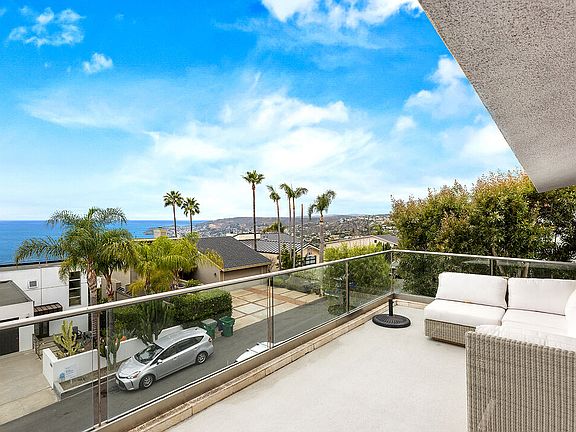 1120 Katella St - 180-degree ocean views to Catalina from this contemporary home in coveted Arch Beach Heights, minutes from Victoria Beach and Woods Cove Beach. Elegantly appointed with high end finishes throughout, this 3 bed, 2.5 bath is beach and community living at its finest. The living room and kitchen welcomes you to an indoor outdoor flow with sliding glass doors that expand out to the ocean view deck. The recently updated chef's kitchen encompasses white marble countertops, a walk-in pantry, and Bosch + Sub-Zero appliances. Just off the living room, the primary suite with vaulted ceilings leads out to a private deck and spa with a fireplace where you can entertain guests, surrounded by greenery and bamboo hedges. The primary bedroom also consists of a spacious closet and a well-lit bathroom with dual sinks and a separate jetted tub + rain shower. Enter the lower level featuring a bonus room, laundry closet, and two guest bedrooms that share a private balcony and beautiful ocean views. Other amenities include direct access to the 2-car garage, a dumbwaiter from garage level to kitchen to carry up your groceries, and hardwood flooring throughout. Conveniently located by Moulton Meadows Park, Ben Brown's Golf Course, Montage Resort, hiking trails, and local shops and restaurants. Enjoy the peace, tranquility, and breathtaking sunsets from this home, just minutes away from all that Laguna Beach has to offer. Make sure to watch the detailed walkthrough video on YouTube!