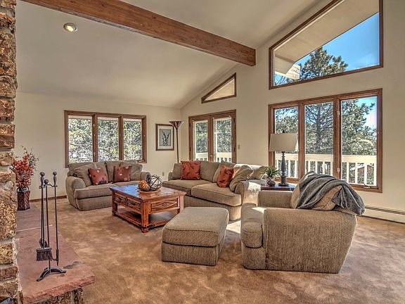 This home provides a wonderful opportunity for anyone wanting to live in the Woodmoor community. The excellent schools, convenient shopping and beautiful hiking trails just minutes away add to the appeal of this wonderful home. Perfectly situated to capture picturesque views, this rancher is full of natural lighting and charm. When you enter this home you will immediately be delighted with the open concept and mountain scenery. The main level features a spacious living room that opens to the formal dining room with a wall of windows capturing the peaceful setting and illuminating the home with natural lighting. The living room is graced with a beautiful stone wall, wood burning fireplace, vaulted ceiling and two separate access doors to the large back deck. The kitchen boasts plenty of cabinet and counter space with an eat-in kitchen, enclosed patio/sunroom and work space. The master bedroom is located on this level with two walk in closets and a large bathroom. There are also two additional rooms on this level. The lower level features a large family room with a second stone wall and wood burning fireplace. There is a kitchenette/eating area in the lower level as well as three additional bedrooms and a bathroom. You will also find a large unfinished storage area on this level. This house has been well kept both inside and out. To learn more about this house please view the attached feature sheet.