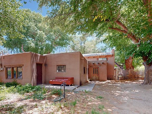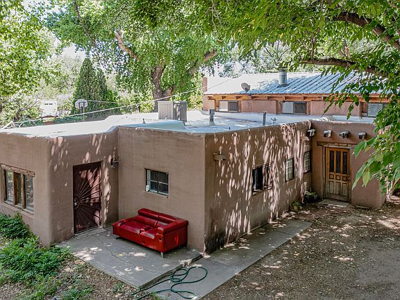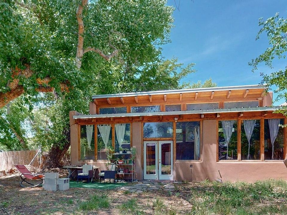Authentic Passive Solar ADOBE at the end of a shady street nestled between massive trees and large organic gardens, right next to the Irrigation ditch/trails with water rights; Truly an oasis. This home has been a peaceful private retreat on .61 acre with vaulted ceilings, adobe walls and brick floors. Jacuzzi tub, sunny kitchen with All new dishwasher, RO water, tankless water heaters and all sinks/fixtures updated. New partial radiant heat system. 1500 sq ft shop/garage that is insulated, plumed for gas and water and wired for 240v. Car lift, closet steel safe, ventilation hood for a pro workshop with built in benches and sink. Also a 20x8 building with laundry and bathroom for RV space, rental or guests. Recent major tree service and flat TPO roof. As rare as it comes!